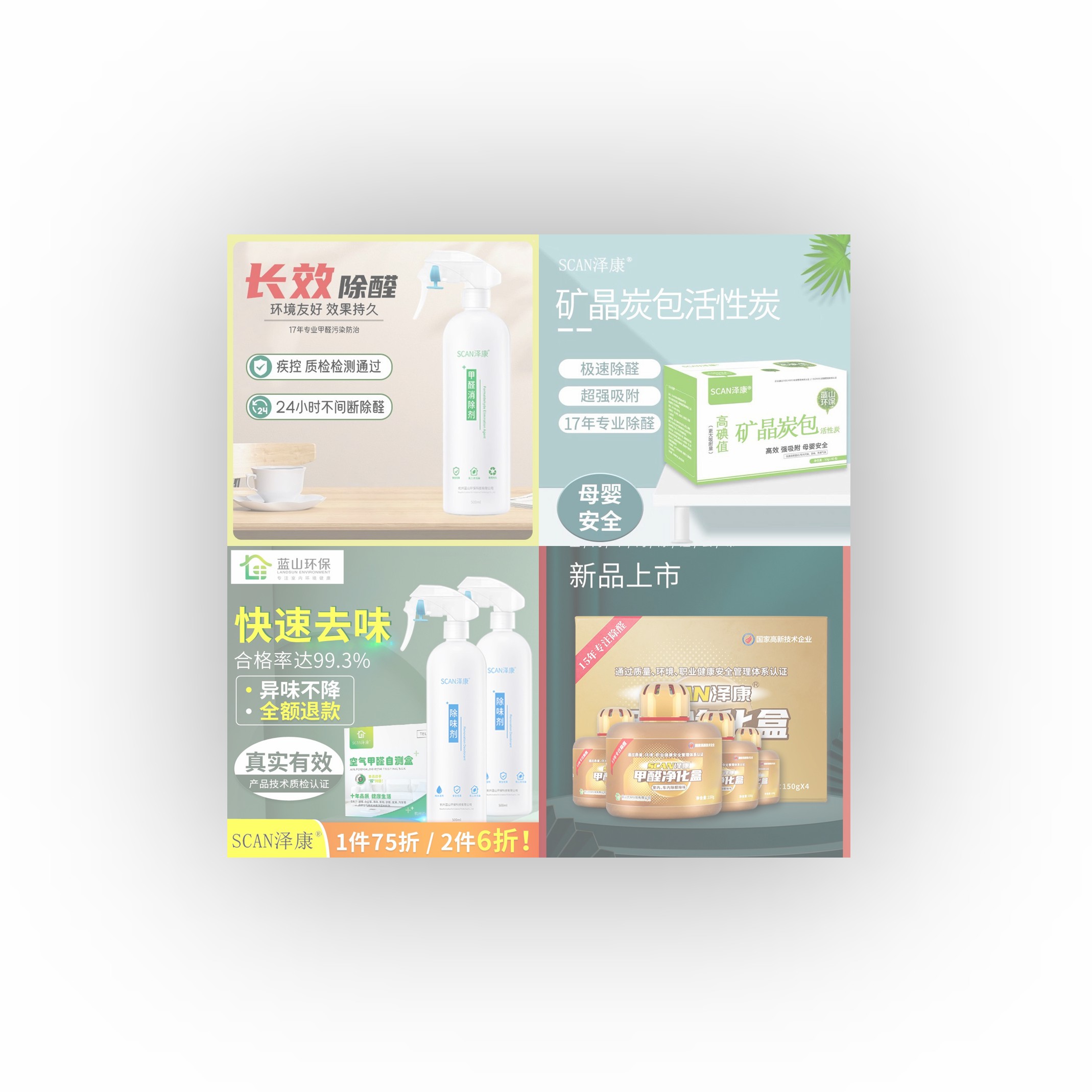 可根据需求选择不同类型除醛产品,主要包括,甲醛消除剂(聚合类)、除味剂、纳米矿晶(吸附类)及空气净化盒(分解类)。